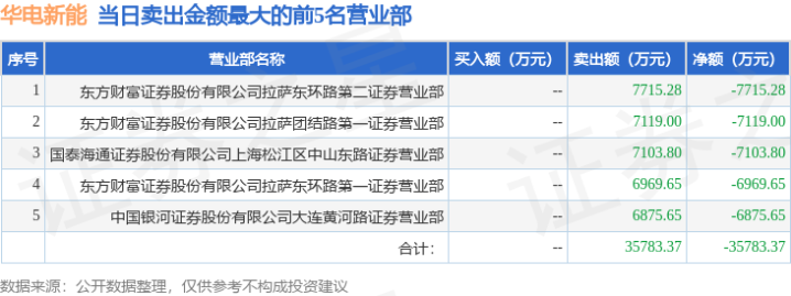 证券之星消息,沪深交易所2025年7月23日公布的交易公开信息显示,华电新能(600930)因有价格涨跌幅限制的日换手率达到20%的前五只证券登上龙虎榜。此次是近5个交易日内第1次上榜。