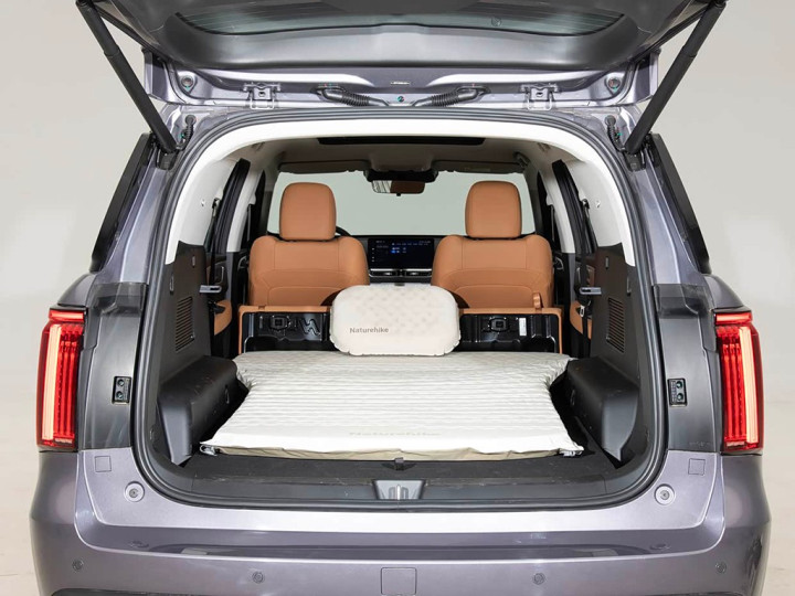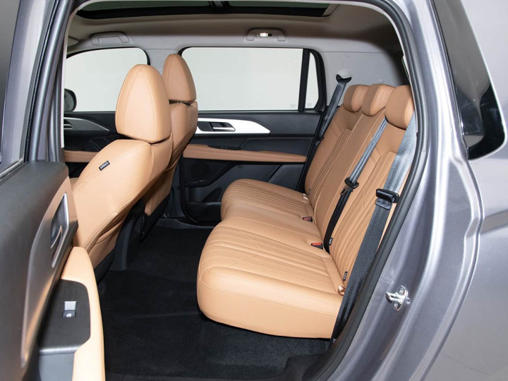 再看车身尺寸,车长5190mm、车宽1905mm、车高1864mm,轴距3140mm,标准的大型SUV身材。车内座椅布局为5座,且都是配备的仿皮座椅,第二排座椅还支持靠背角度调节,就算非承载式车身坐着舒适性差点儿,但好歹它也还有个后排座椅角度可调,所以按理说偶尔应付家用也没问题。