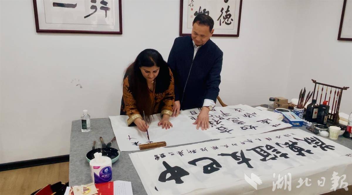 行走在孝感的大街小巷,“巴铁”是巴基斯坦媒体人从孝感民众口中听到最多的词。参访活动中,文昌阁社区书法爱好者们还手把手教代表团成员写毛笔字,并在宣纸上郑重写下“中巴友谊万岁!”